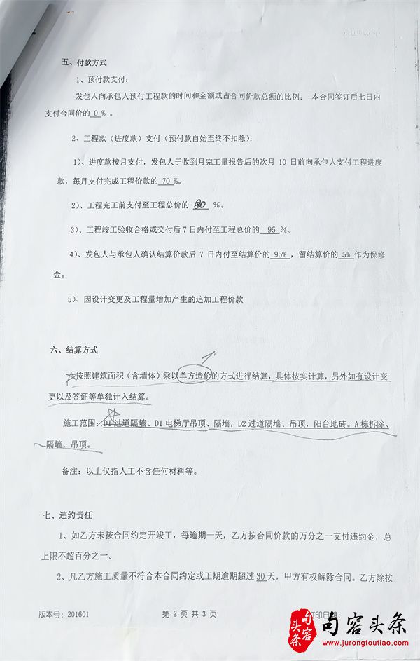 在结算方式处也作出了:“按照建筑面积(含墙体)乘以单方造价的方式进行结算,具体按实计算,另外如有设计变更以及签证等单独计入结算”的规定。