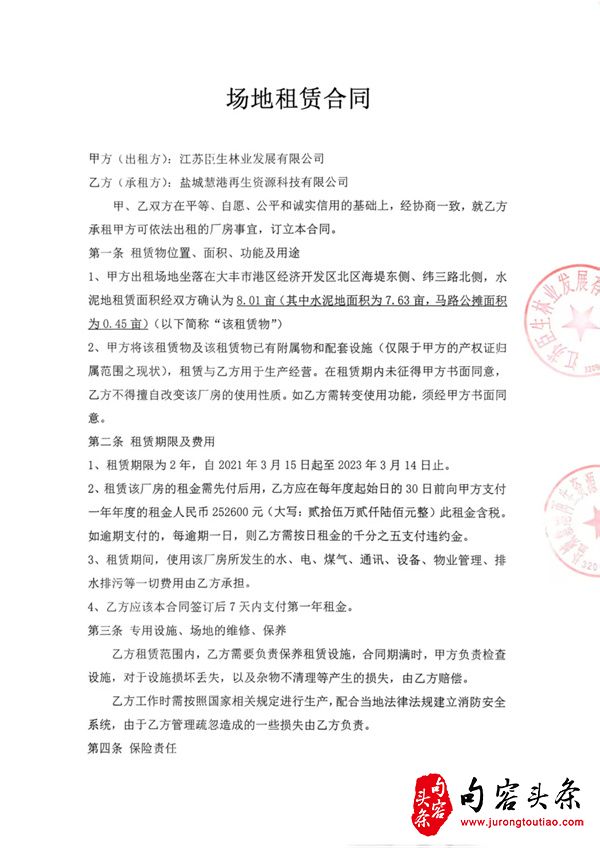 1. 2020年9月,租用了大丰港再生资源产业园中江苏汇鸿国际集团大丰物流有限公司院内的水泥硬化空地,机器设备和员工陆续到位,于2020年10月中旬开始经营。