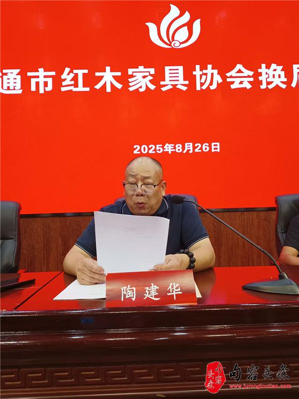 句容头条讯 8月26日下午,南通市红木家具协会在南通职业大学报告厅举行换届大会,选举产生第三届理事会领导班子。市工信局党组副书记、副局长储育新,市民政局党组成员、副局长肖四军应邀出席会议。