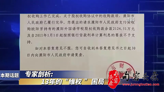 程轶侠记者:主持人好,观众朋友们好,近日,溧阳市政府与欧阳女士之间的股权转让纠纷引起了社会各界的广泛关注。