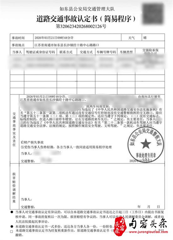 近日,江苏南通的林先生向扬子晚报/紫牛新闻记者反映称,自己于2025年12月在如东县金昌驾校报名学车,2026年3月21日练车途中遭遇车祸。事发时,一辆货车与教练驾驶的从考场租赁的考试车相撞,车上共4名学员,他的伤势最严重,经如东县中医院诊断为颅内出血、锁骨骨折和肋骨骨折。如东县公安局交通管理大队3月21日开具的道路交通事故认定书显示,货车司机马某负主要责任,教练尤某负次要责任。