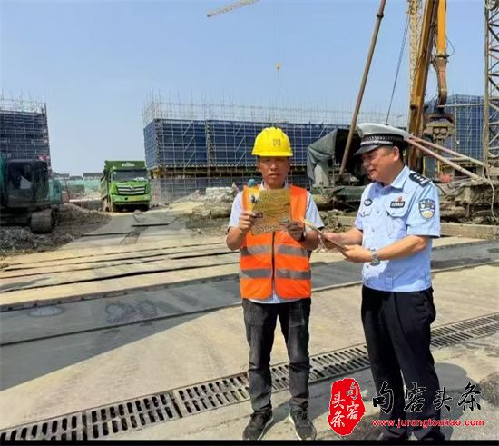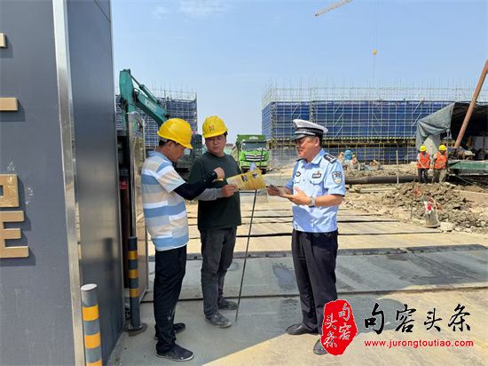 句容头条讯 为保障建筑工地安全施工、施工人员、绿化施工人员的出行安全,5月27日,宜兴市交警大队周铁中队民警来到华仁建设集团有限公司彭干村施工工地,向施工人员普及交通安全知识,发放相关宣传资料,提醒施工人员出入遵守交通规则,同时注意安全生产。
