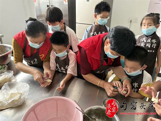 非遗童趣润家风,共育新苗向未来。项目针对双职工家庭的暑期托管需求,联合非遗传承人和大学生志愿者,精心设计了“非遗风筝制作+安全托管+暑托‘食’光”特色课程。课程不仅包含传统风筝制作技艺,还融入了红色文化宣讲、脸谱彩绘、阅读推广、法治教育等内容,今年更是新增了"暑托'食'光"实践课:面点师傅指导制作包子、馄饨等传统美食,开设“小小厨神”亲子烹饪日促进家庭互动。该模式通过传统文化熏陶、生活技能培养、安全看护服务的有机融合,既解决家长后顾之忧,又实现儿童德智体美劳全面发展。特别是新增的食育课程,既传承中华饮食文化,又培养劳动技能,进一步强化了家庭-学校-社区协同育人的立体化成效。