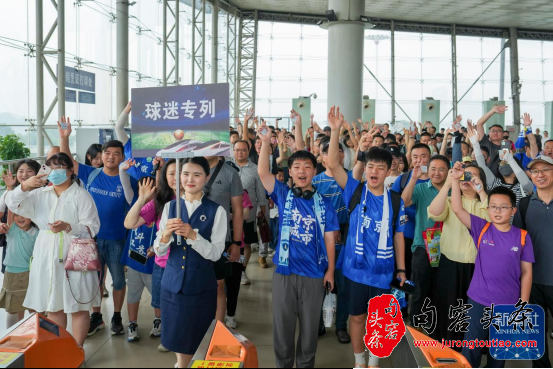 6月14日淮安队主场迎战南京队,南京市长陈之常带着载有700余名球迷的G9253次列车,从南京开往淮安的“苏超”球迷专列到场观战。