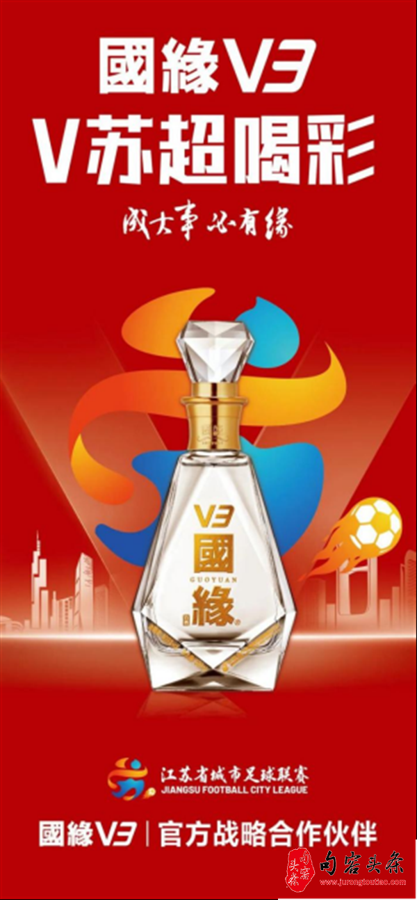 国缘V3作为苏超的唯一官方战略合作伙伴,珠联璧合。国缘V3成以匠心致敬荣耀,为城市荣耀干杯。V胜利喝彩, V拼搏加油,V友谊干杯。以多种方式助推“苏超”,营造百万观众沸腾的比赛赛场,燃火百场球迷狂欢的“第二现场”,助推10亿网友燃爆“苏超”。