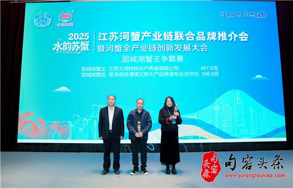 会上,诞生了一批颇具影响力的河蟹品牌。苏州水之源大闸蟹养殖有限公司选送的551.5克雄蟹和419.6克雌蟹斩获 “蟹王奖”“蟹后奖”。江苏大湖特种水产养殖有限公司选送的497.6克雄蟹斩获固城湖第二十五届蟹王蟹后争霸赛蟹王;高淳县砖墙镇文辉水产品养殖专业合作社选送的398.6克雌蟹斩获固城湖第二十五届蟹王蟹后争霸赛蟹后。
