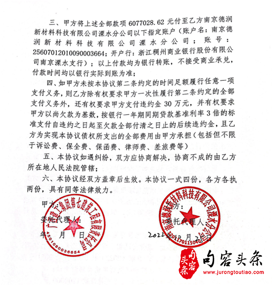 施工工程中,出卖方南京德润新材料科技有限公司溧水分公司严格遵守《合同》约定,不折不扣保质保量按期交货,且出具双方均认可的销售明细清单和对账单。至2021年7月,甲方欠乙方货款6077028.62元逾期未依约付款,乙方将甲方诉至南宁市良庆区人民法院(案号:(2022)桂0108民初9051号)。