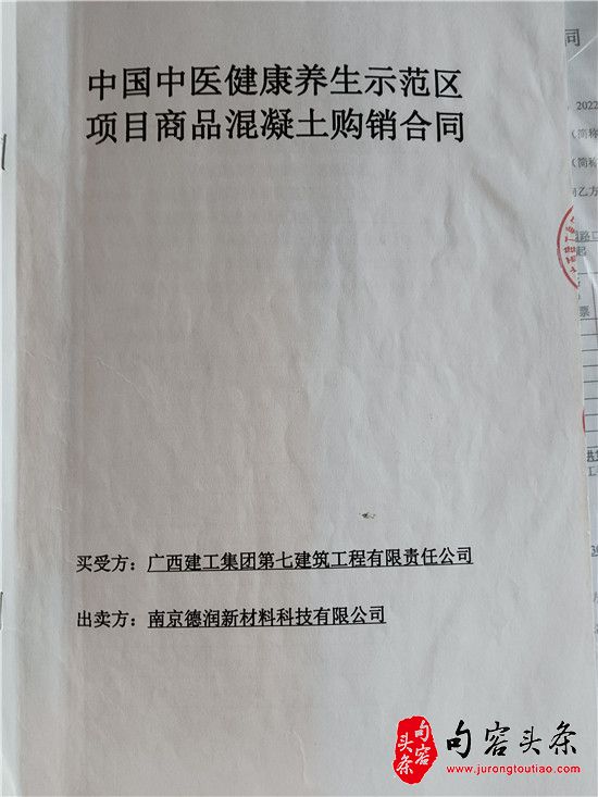 2021年1月25日,广西建工集团第七建筑工程有限责任公司作为买受方和出卖方南京德润新材料科技有限公司溧水分公司,签订了《中国中医健康养生示范区项目商品混凝土购销合同》。《合同》在合同标的物、质量标准、交货方式及时间、货物数量及质量的验收、付款方式和时间、税票要求、违约责任、争议解决及其他等方面具体约定。
