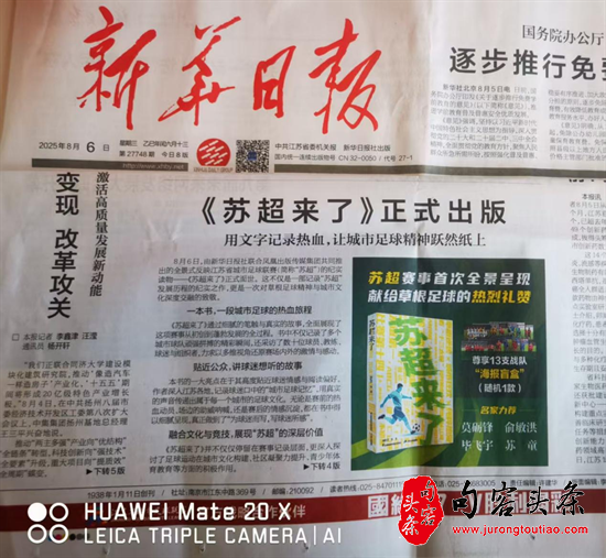 面对稍纵即逝的热点窗口期,新华日报社从仅用16天就高效完成了《苏超来了》的撰写工作,让那些因热爱而闪亮的瞬间、因团结而沸腾的城市、因纯粹而动人的故事,永久定格在书页间。“书超”来了,《苏超来了》!(图文/孙婷)