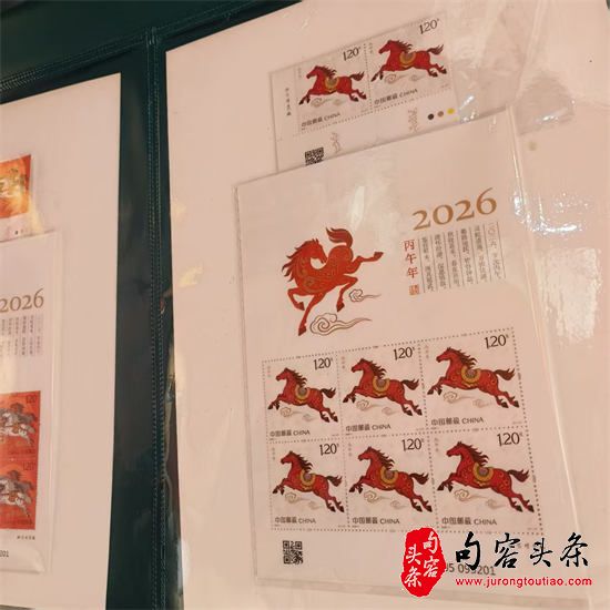 句容头条讯 2026年2月1日上午,由句容市收藏家协会主办,句容市美术馆承办、句容市集邮协会协办、贵州习酒&句容世业贸易有限公司支持的“万马接福迎新春”邮票展于葛仙湖公园华阳书院内开展。