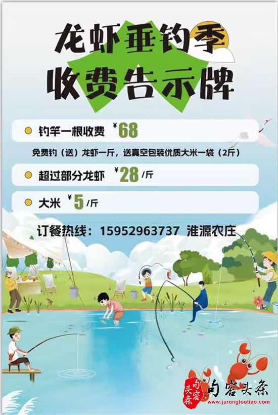 l 现场钓竿一根收费68元,免费钓(送)龙虾一斤,送真空包装优质大米一袋(2斤)