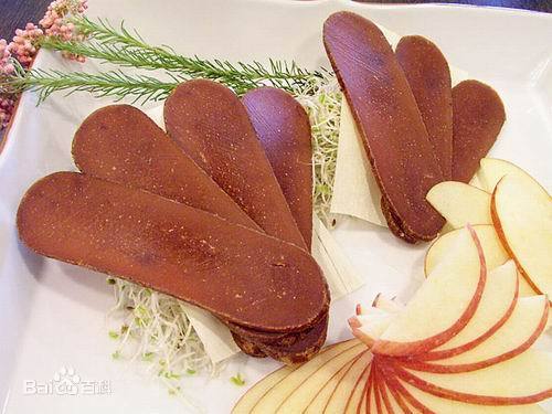 乌鱼子,雌乌鱼的卵巢所制的水产加工食品,盛产于台湾等地。乌鱼子含有丰富蛋白质及脂质,营养价值很高。其烘烤后加佐料食用,风味独特,吃起来有特殊嚼感。