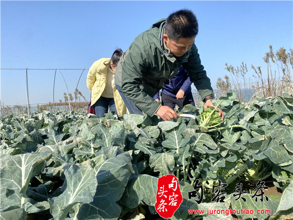 在收获现场,记者一行随着镇江农科院的专家走进田里,查看并分析青花菜生长情况。