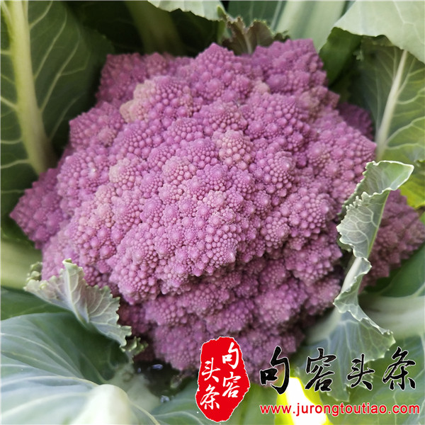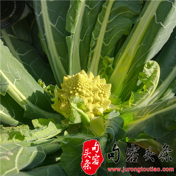 除了自主培育青花菜品种外,镇江农科院蔬菜花卉研究室还依托镇江农业农村局项目“蔬菜瓜果安全高效绿色生产技术推广与示范”,积极从国内外引进不同类型、色彩的花菜新品种。花菜一般于7月开始陆续播种育苗,8月底开始定植,2-3个月时间便可采收。田间管理简单,农药施用少。令人惊奇的是,这几种“花菜”所结出的花球五颜六色,有青绿色、白色、橙色、紫红色、金黄色等多种颜色,形状各异,鲜艳夺目,煞是可爱。