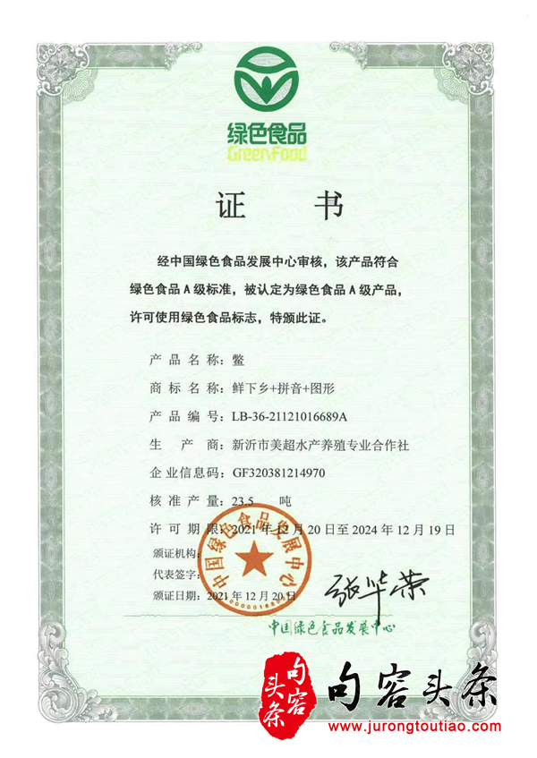 合作社因一直贯彻零用药、少用药,连续多年年接受省市县三级抽检,均无药物残留。2021年,经第三方谱尼测试集团检验产地环境及产品均为合格,达到国家“绿色食品”等级,获得中国绿色食品发展中心颁发的绿色食品证书。2022年,合作社投资530万元对现有的进排水通道进行了疏通,采用“三池两坝”的方法,对养殖尾水进行生态化处理,达到淡水养殖Ⅱ类标准,实现循环使用。2023年3月,合作社“鲜下乡”品牌在江苏红名优水产品评比中获得江苏省优秀企业产品品牌。