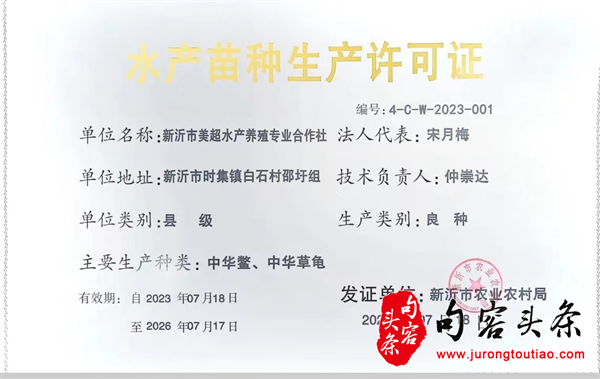 2023年初,合作社从中华鳖、中华草龟省级良种场分别引进亲本3000只、2000只,可年繁育中华鳖幼鳖10万只、中华草龟幼龟5万只。7月,获发县级中华鳖、中华草龟苗种生产许可证。合作社现合作社三大基地每年可生产大鲵商品鱼10万斤,产值2000万元;生产绿色商品青鱼300吨,产值2000万元;生产绿色商品鳖50000斤,产值500万元;培育中华鳖幼鳖10万只、中华草龟幼龟5万只,产值500万元;合计年总产值突破5000万元。