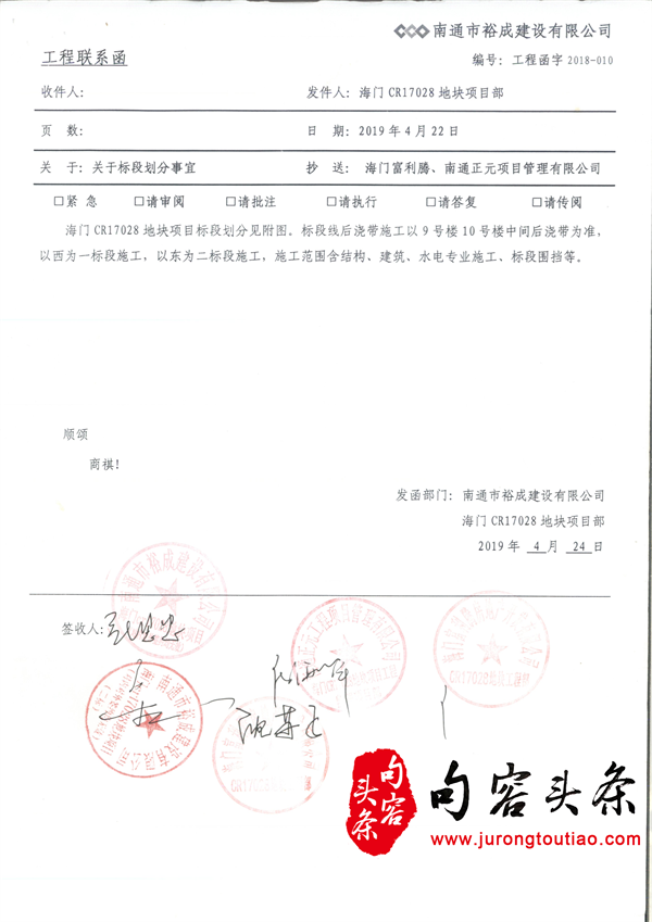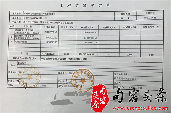句容头条讯 今年7月份,来自江苏昆山的建筑商朱结龙、姚瑞同、钱香泉,联名投诉媒体,反映南通海门瑞富房地产开发有限公司和南通市裕成建设有限公司,在建设海门市长江路东/聚贤路北 CR17028 地块项目总承包二标段工程施工中,恶意串通,否定事实,想赖掉三位投资商5400万余元工程款。媒体披露后,海门区住建局高度重视,专人负责,对朱结龙、姚瑞同、钱香泉三位投资商以及南通海门瑞富房地产开发有限公司和南通市裕成建设有限公司逐一调查,进一步深入了解真实情况,澄清事实,正以积极的态度,采取措施,拿出解决问题的方案和办法。为此,朱结龙、姚瑞同、钱香泉专门致函,对海门区住建局表示深深敬意和感激。