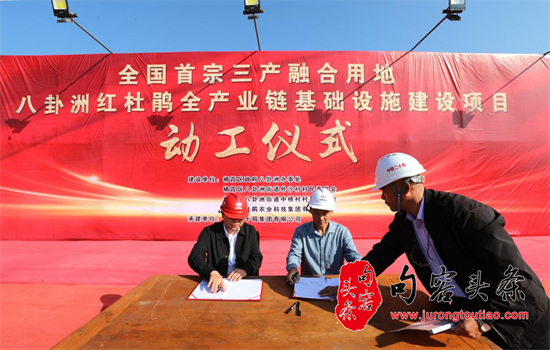 为进一步实施乡村休闲产业和乡村旅游业的提档升级,全国首宗三产融合用地 ——南京“红杜鹃全产业链基础设施建设项目”动工仪式,今天(11月1日)上午在南京市江中鹂岛八卦洲红杜鹃生态园举行。