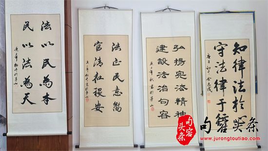 翰墨传正气,法治扬清风。为深入学习宣传习近平法治思想,推动“八五”普法的深入发展,营造句容市法治文化氛围,老年书画协会将分期分批在各地多种形式开展法治宣传书画展。茅山的法律明白人、学生、社区居民、村民也一并参加了现场的书法展。