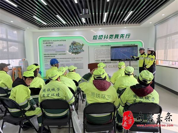 句容头条讯 为切实做好春运交通宣传工作,提高环卫工人及车辆驾驶员的文明交通意识,确保环卫工人在为城市清洁辛勤工作的同时平安出行,22日,宜兴市城管局、宜兴市交警大队周铁中队民警联合走进驻地环卫所,组织开展“平安春运,交警同行"主题活动。