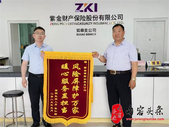 句容头条讯 5月27日,紫金财产保险股份有限公司如皋支公司收到了来自如皋市搬经镇失独老人张老汉赠送的写有“风险屏障护万家•暖心服务显担当”的锦旗,由衷感谢紫金保险给予的帮扶。