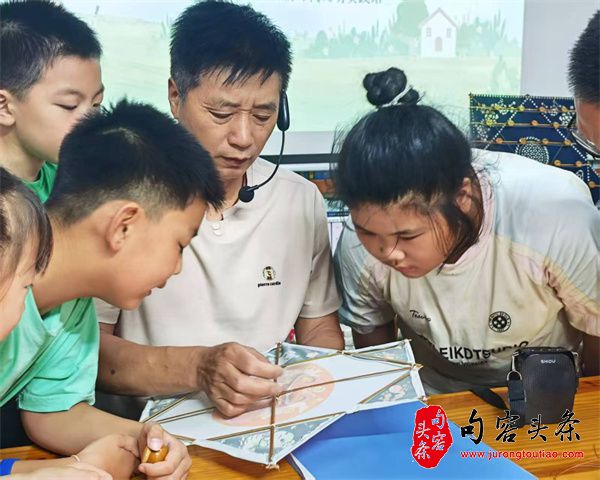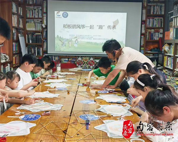 句容头条讯 7月29日下午,南通市崇川区唐闸镇街道新园社区板鹞风筝协会副会长、南通市非遗风筝传承人胡智,走进唐闸古镇唐闸尚书院举办“和板鹞风筝一起’趣’传承”非遗技艺课,26名暑期莘莘学子参加活动。