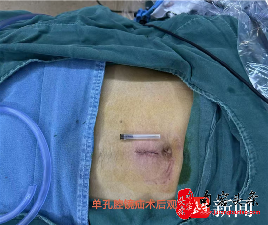 了解到老张的担忧后,赵柯副主任医师与王永副主任医师共同商议,为其量身定制了手术方案 —— 该院新开展的单孔腹腔镜疝修补术。相较于传统三孔腹腔镜手术,该术式仅需在脐下做一个约 2.5 厘米的微小切口,置入特殊多通道穿刺器即可完成全部操作,能在实现治疗目的的同时,最大程度减少手术创伤与疤痕形成。这一方案彻底打消了老张的疑虑,他欣然接受了手术,术后第二天便能下床活动,对治疗效果十分满意。