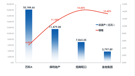 资产规模:截止2020年三季末,四家房企总资产规模为:万科18144.66 亿元、保利11479.00 亿元、招商7063.25 亿元、金地3797.89亿元。万科总资产逼近2万亿,较2019年底增长4.89%;保利总资产在2019年冲上万亿规模,三季末总资产增长11.10%;体量相对较小的招商、金地增速较快,分别较2019年底增长14.35%、增长13.43%。