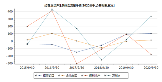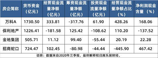 三大现金流显示,万科、招商更依赖于经营现金流,保利、金地则更倚重融资。具体来看,万科的经营现金流净额同比大增18倍,主要和拿地节奏放缓有关。据披露,前三季万科新增总建筑面积约1832.3万平方米,同比下降35.3%;新增权益规划建筑面积约1066.4万平方米,同比下降47.8%。