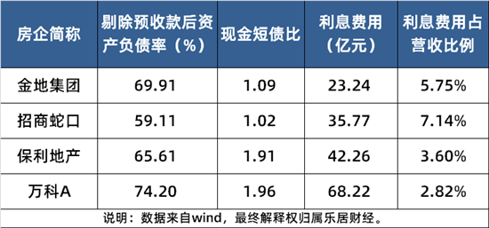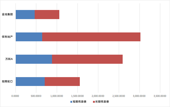 综合来看,保利债务结构更优,短债占比约两成,万科短债占比约三成,金地、招商短债占比约四成左右。