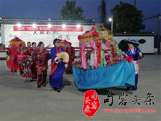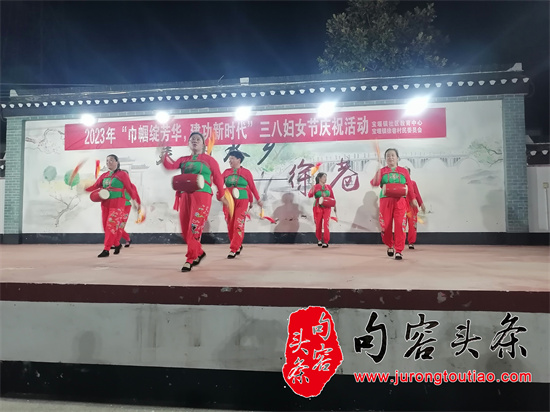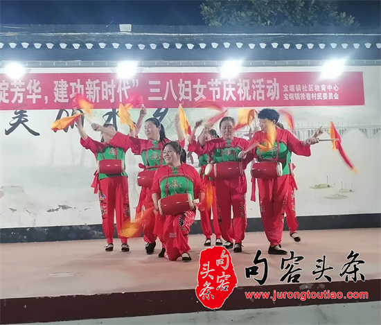 句容头条讯 (图文/李国平 倪连方)3月7日晚,在今年“三八妇女节”来临之际,在镇江市宝堰的千年古村——徐巷村的健身广场上,一场传统乡村晚会在锣鼓声中拉开了序幕,演员们是刚下班的徐巷村女性村民。