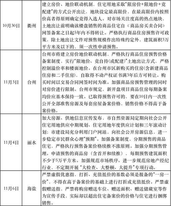 “十四五”规划建议发布的同一天,浙江台州升级了楼市调控,规定在台州市区新购买的住房(含新建商品住房和二手住房),自取得不动产权证书满3年后方可转让。丽水紧跟其后明确“四个加强”调控措施。