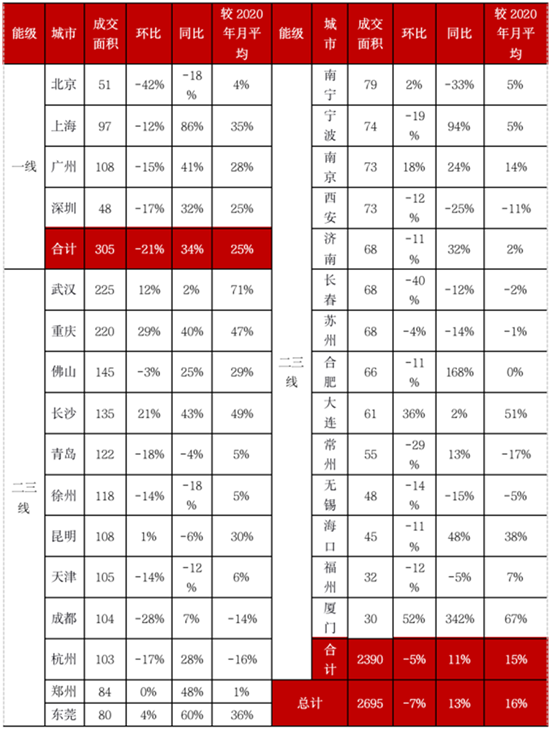 备注:上表中城市成交量为本月根据28日左右数据预估得到