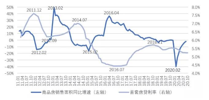 所以,虽然1-10月商品房销售额明显增长、创下新高,推动居民中长贷款创新高,但增加的额度在减少,部分贷款确实延后了。同时,也释放了一个信号,这一轮“信贷潮”的顶点该到了。此外,10月份,全国首套房贷平均利率九连降趋势结束。从融360监测的全国首套房贷款平均利率为5.24%,与上月持平,同比下降0.28个百分点。从过去数据看,房贷利率和销售面积趋势刚好相反,前者领先3-6个月。