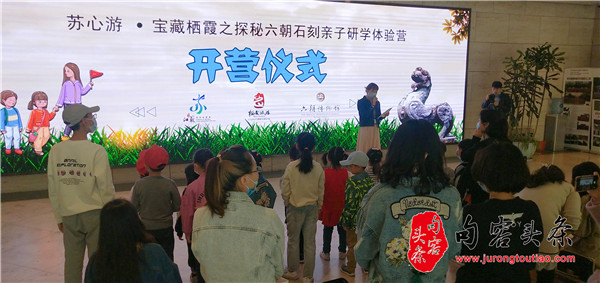 句容头条讯 4月24日下午,南京六朝石刻亲子研学体验营正式开营。20余组家庭从六朝博物馆出发走进南京栖霞,开始宝藏栖霞之探秘。
