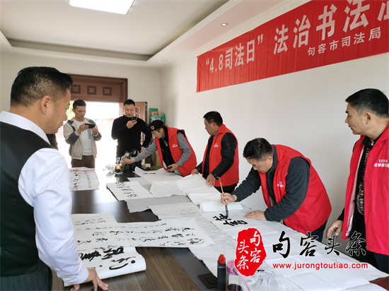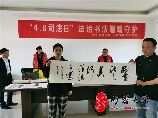句容头条讯(图文/周鹏 杨红梅)法治护航你我他,法润句容惠万家。优质法律服务,优化产业环境。句容市司法局联动乐法司法行政社会组织、老年书法协会公益普法团队以及鲲鹏山庄法律明白人等力量,今天上午在鲲鹏山庄开展第九届“4.8司法日”活动,提升群众法治获得感和满意度,法润句容产业强市。