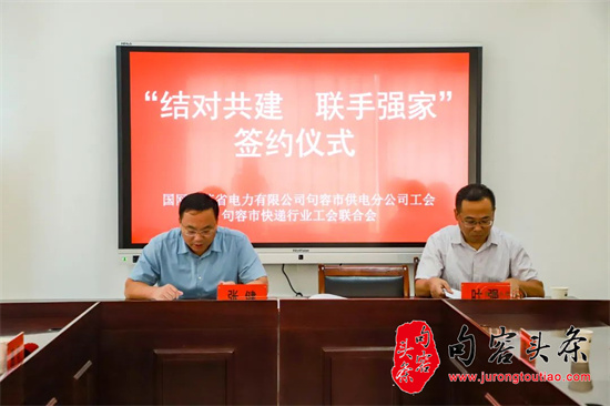 在参会人员的共同见证下,句容市供电公司工会代表与句容市快递行业工会联合会代表签订了结对共建协议。