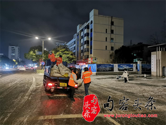 句容头条讯(图文/侯静)22日下午,句容市区突发冻雨、霰等恶劣天气,气象台接连发布道路结冰黄色预警,句容市城管局以雪为令,严阵以待,迅速集结部门科室员工、志愿者200余人开展“铲冰除雪”行动,全力清扫积雪,保障群众出行。