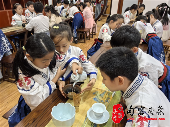 宋代,是中国茶文化发展史上的一座高峰,点茶作为当时最流行的饮茶方式,更是承载着宋人精致优雅的生活美学。活动现场,精致风雅的陈设,氛围感十足。樊红月老师深入浅出地为孩子讲解了宋代点茶的历史渊源、技艺要领和文化内涵。随后,在老师的指导下,同学们动手尝试了点茶的过程,小心翼翼地注水、调膏、击拂,仿佛真切回到了宋代,感受了古人雅致的生活方式。经过一番精彩的角逐,根据茶百戏评选出了 “小小茶王”。现场气氛热烈,充满了欢声笑语,小茶童们不仅增加了对中国茶文化的了解,还感受到了中华传统文化的无穷魅力。