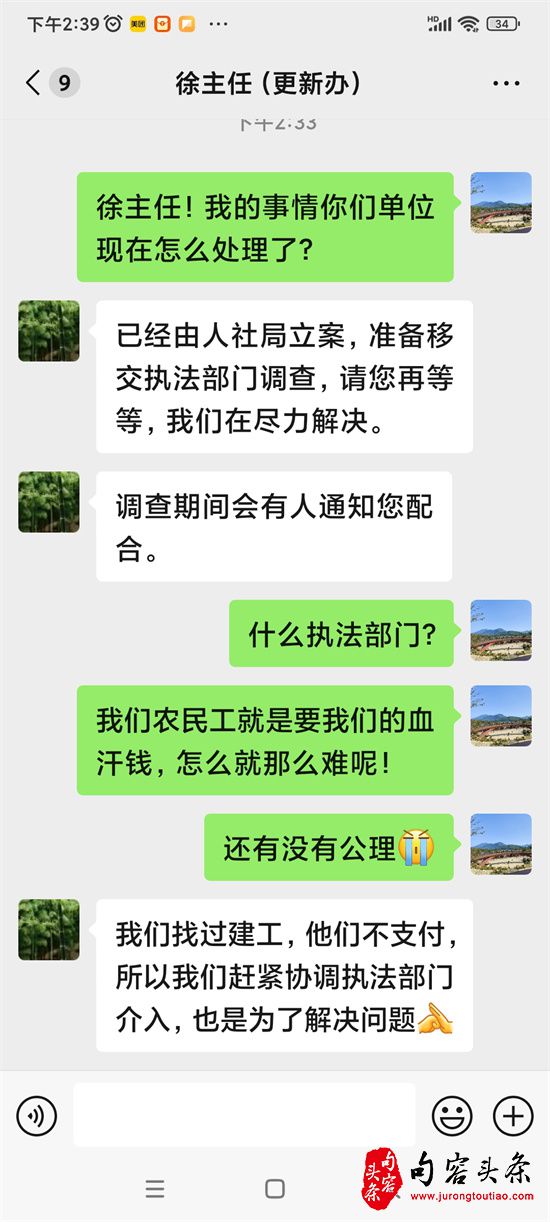 更令人更不可思议的是:当农民工再次追问,石家庄市城市更新促进中心回复的是:“目前,公安部门正在调查,肯定会有结果”。农民工不禁要问:人社部门、建设监管,你们“守土有责”还是“严重失职”?是严格执法还是在藐视国家农民工工资法律法规,不作为,乱作为?
