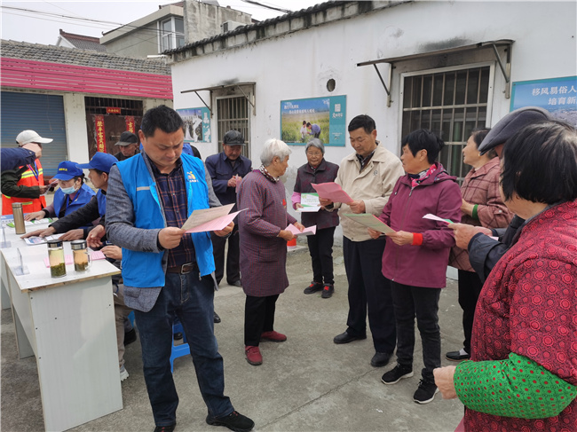 活动中,志愿者们向来往群众发放宣传资料,讲解垃圾分类小知识,呼吁大家从日常生活入手,从小事做起,有效处理生活垃圾,争当垃圾分类的倡导者、参与者。为了促进生活垃圾的分类处理,后白村将生活垃圾分为有害垃圾、易腐垃圾、不易腐垃圾三类,设置了相应的垃圾箱,并给垃圾箱贴上相应文字指示,方便群众投放,还进行积分制管理,村民们可以用垃圾分类累计积分进行生活用品、农用物资等商品的兑换。