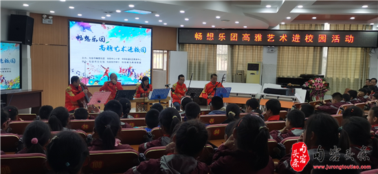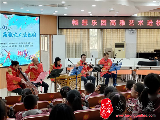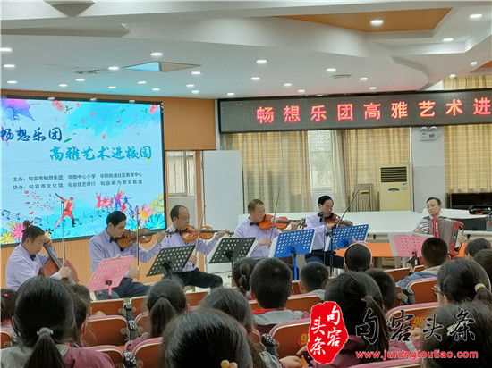 句容头条讯 (陈贤明)为丰富校园文化生活,提升学生的艺术素养,陶冶学生的音乐情操,让高雅艺术走入校园、贴近学生,句容市畅想乐团走进华阳中心小学,开展了“高雅艺术进校园”活动,给该校四年级师生带来了一场音乐的“饕餮盛宴”。