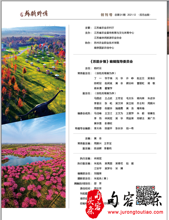 句容头条讯 历经半年的蕴酿筹备和精心采编,由江苏省农业农村厅主管,江苏省农业宣传教育与文化体育中心和江苏省休闲旅游农业协会主办的《苏韵乡情》杂志创刊号终于在2021年年底杀青、与大家见面了。