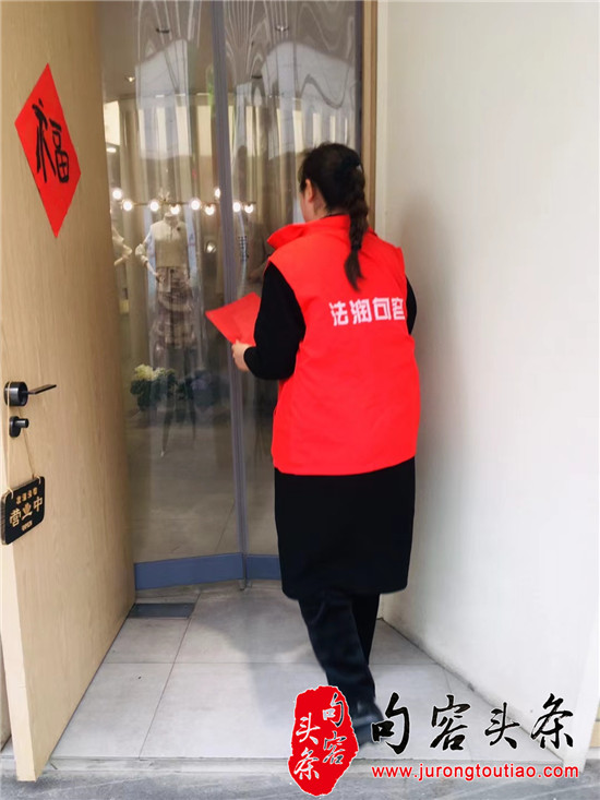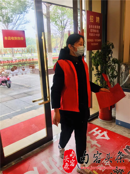 身穿醒目“法润句容”红马甲的社会普法志愿者,用行动彰显爱心善意和责任担当,成为疫情防控前沿一道靓丽风景线。(图文/杨红梅 卞婷婷)