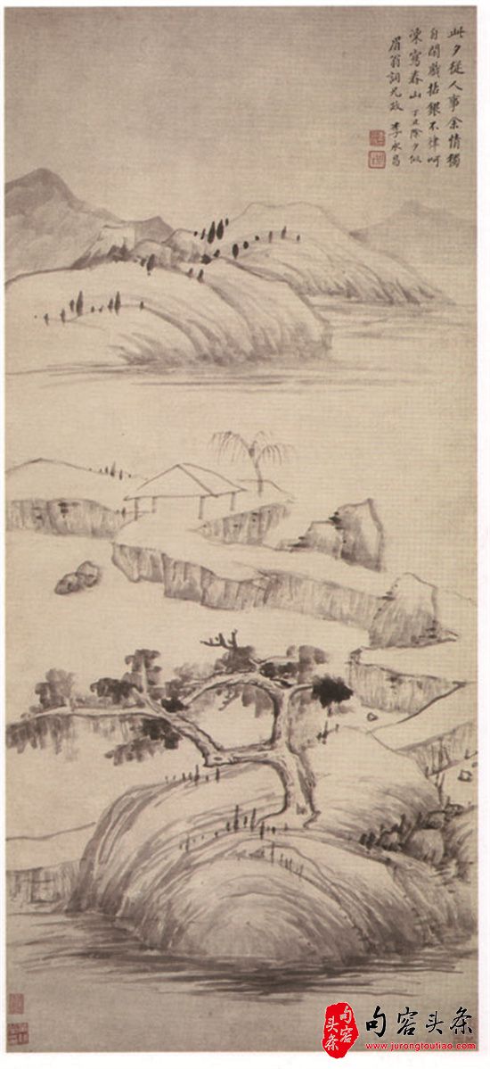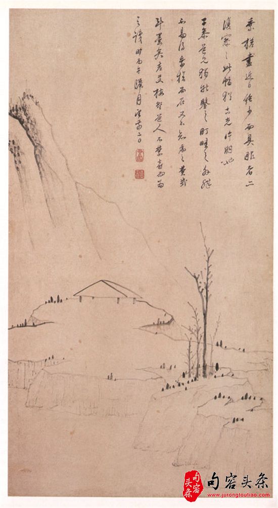漂泊终年未有庐,溪山潇洒树扶疏。此时若遇云林子,结个亭子读异书。(渐江《吴中山水图》题跋)