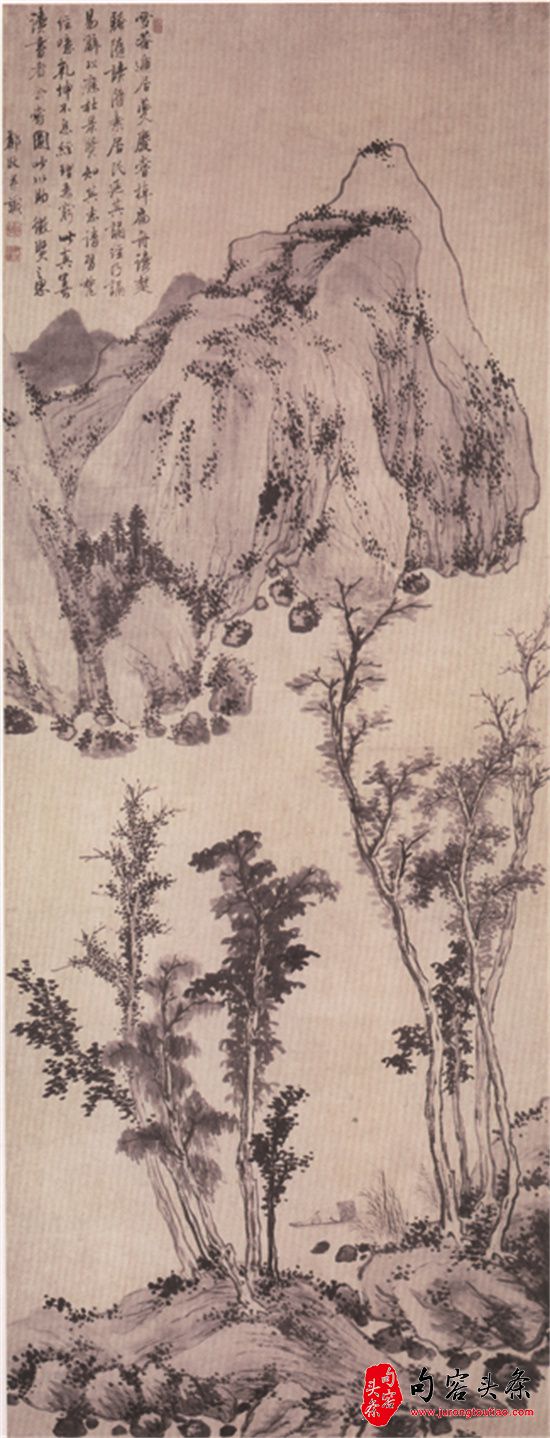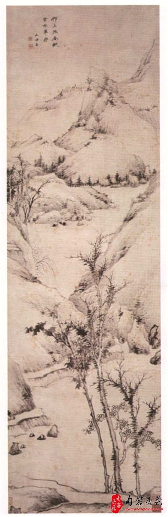 (渐江)善画山水,初师宋人,及为僧,其画悉变为元人一派,于倪黄两家,尤其擅长也。(《图绘宝鉴续纂》)