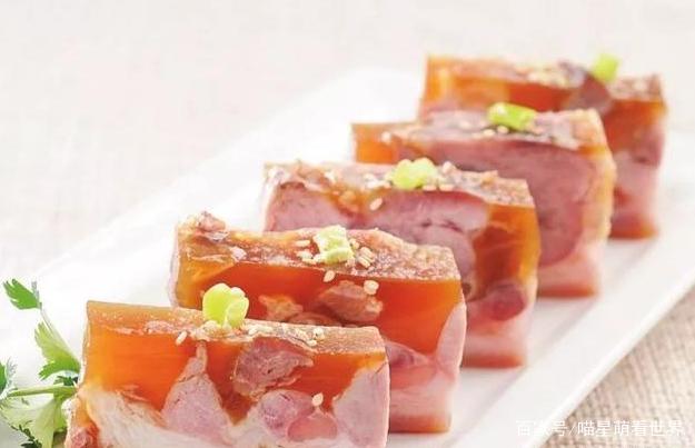 “镇江三怪”之一“肴肉不当菜。肴肉虽是凉菜,但非同于一般熏腊之类。它精肉绯红,虽凉但酥嫩易化,柔韧不拗口,不肥不腻。6元一块,味道不错。