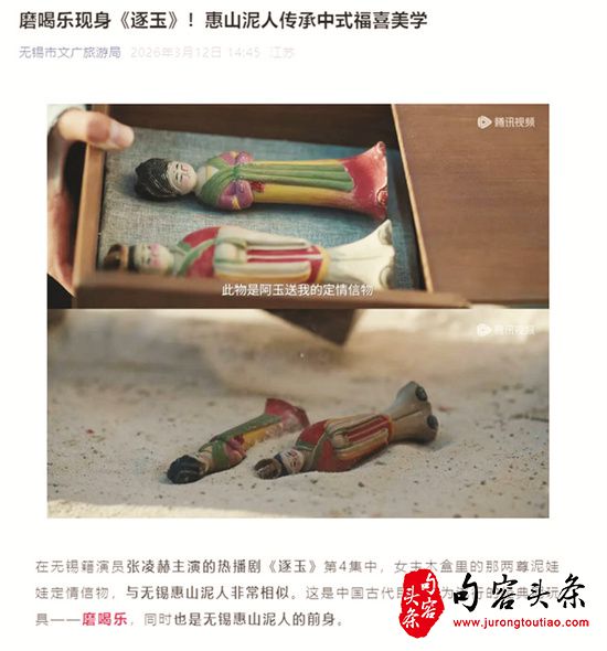 正在热播的古装剧《逐玉》中出现了这么一段情节,男配宋砚为了证明自己和女主角长玉曾两情相悦,拿出了长玉送给他的定情信物,是一对小小的彩色泥塑小人偶。虽然只是一闪而过的画面,不过3月12日,无锡市文广旅发文“认领”了这对泥塑小人偶,原来这是中国古代民间非常流行的泥玩具磨喝乐,也是无锡惠山泥人的前身。