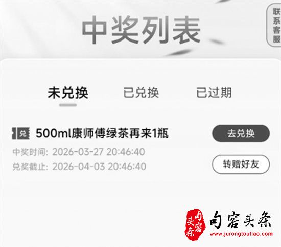 紫牛新闻记者在“康师傅畅饮社”小程序上看到,该活动是从3月1日至9月30日。按照活动规则,消费者每成功扫描一个瓶盖内二维码后有机会抽取以下奖品之一:500ml康师傅绿茶“再来1瓶”兑换券或1L康师傅绿茶“再来1瓶”兑换券。活动期间获奖者需在获奖起168小时(7天)奖品有效期内,在活动页面中查询附近可兑换门店,至门店线下兑换相应产品1瓶。