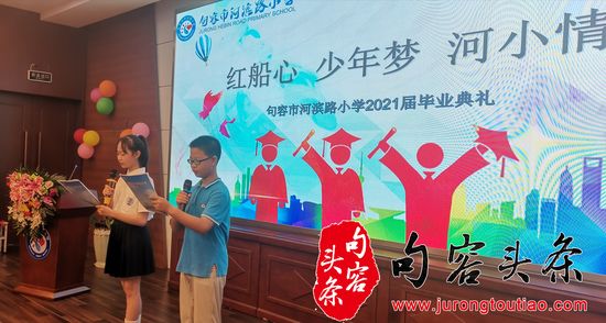 句容头条讯 仲夏的炎日,总是伴随着毕业的告别与不舍。6月28日,句容市河滨路小学举办了2021届“红船心 少年梦 河小情”毕业典礼,学生们告别母校,老师们寄语未来,中国共产党即将迎来百年华诞,学子们也将从这里出发,走上新征程。学校领导、老师及毕业生家长代表在毕业典礼上,共同见证2021届毕业生学业有成,即将离开母校的光荣时刻。